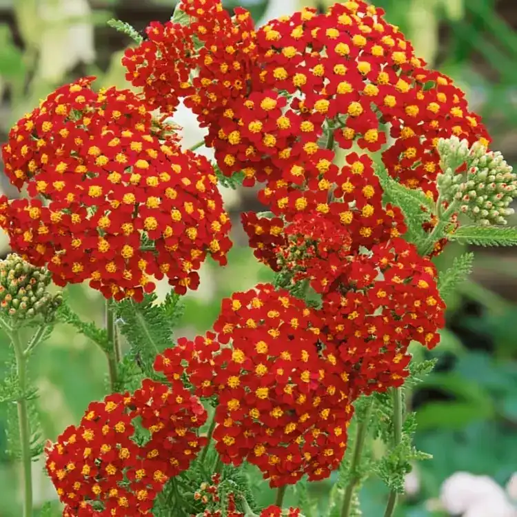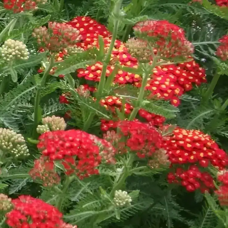 Achillea millefolium ‘Summer Fruits Carmine’ abundantly produces attractive red flowers from early summer to autumn. To prolong the blooming period, it is recommended to deadhead once the initial flowering concludes. This exceptional hardy perennial, known for its ease of cultivation, boasts a bushy habit that makes it an ideal choice for garden borders. To maintain its vigour, consider lifting and dividing congested clumps every three years, either in autumn or spring. This ensures a continued display of vibrant red blooms and promotes the overall health of the plant in your garden.