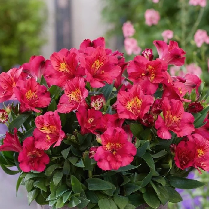 Alstroemeria ‘Incalys Cherry’ (Peruvian Lily) is a stunning perennial that brings long‑lasting colour and vibrant charm to the garden. From early summer through autumn, it produces abundant, eye‑catching cherry‑red blooms with delicate markings, held above attractive green foliage on strong, upright stems. This clump‑forming plant is perfect for borders, patio containers, and cutting gardens, adding vertical interest and warm colour throughout the season. Easy to grow in fertile, well‑drained soil with full sun or light shade, ‘Incalys Cherry’ is hardy, low‑maintenance, and drought tolerant once established. Ideal for gardeners seeking reliable performance and striking floral impact, it also makes beautiful cut flowers for bouquets and arrangements.
