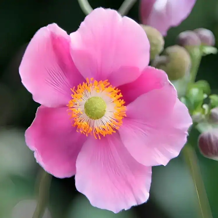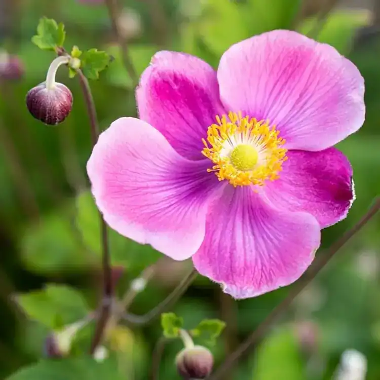 Anemone hupehensis ‘Alando Rose’ is a clump-forming anemone with distinctive pink flowers and green foliage, creating an eye-catching display in your garden. This variety is well-suited for pots and borders, and it is particularly attractive to bees. Being a hardy anemone, it generally requires protection only in the case of very severe frost.