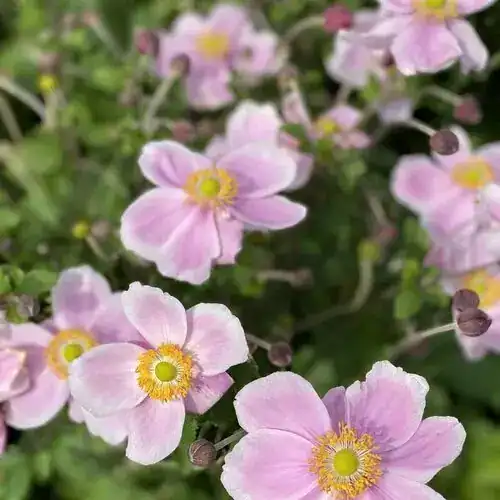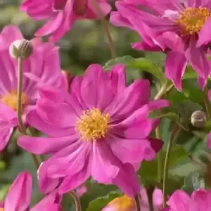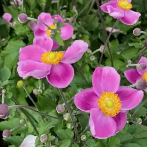 Anemone ‘Royal Blush’ showcases vibrant green foliage and striking deep rose-pink flowers adorned with yellow centers. This stunning floral display graces the garden from early to mid-summer, extending its beauty into late summer and mid-autumn. With its compact and clump-forming habit, ‘Royal Blush’ stands out as an ideal choice for borders or large containers. This perennial not only adds a touch of elegance to your outdoor space but also ensures an extended and enchanting blooming season, making it a versatile and visually appealing addition to your garden landscape.