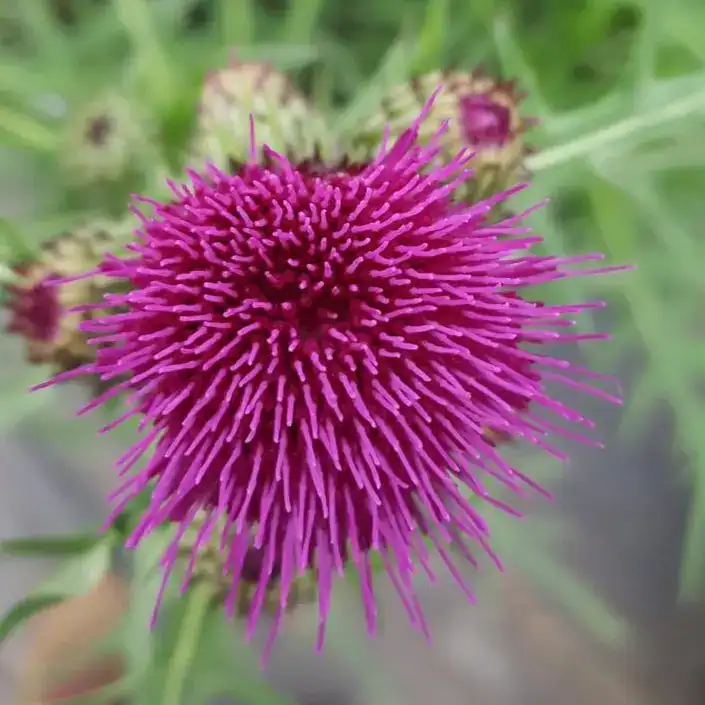 Cirsium Trevors Blue Wonder has attractive purple flowers that from early summer right through to the end of autumn, dark green leaves. Hardy and will only need protection if we have a serve winter. Will tolerate dry conditions and partial shade but will preform best in a sunny border. Loved by bees.