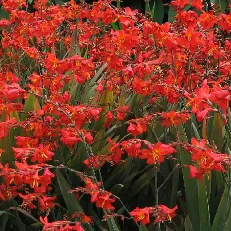 Crocosmia x crocosmiiflora ‘Saracen’ should be planted in a well-drained soil that is in sun or partial shade may need staking. Produces a orange/ yellow/ red flower that blooms throughout the summer, deadhead once flowering has finished to encourage further flowering. Deadhead once flowering finishes to encourage further blooming. Excellent in herbaceous border and pots. Hardy but may need protection if we have to serve frost