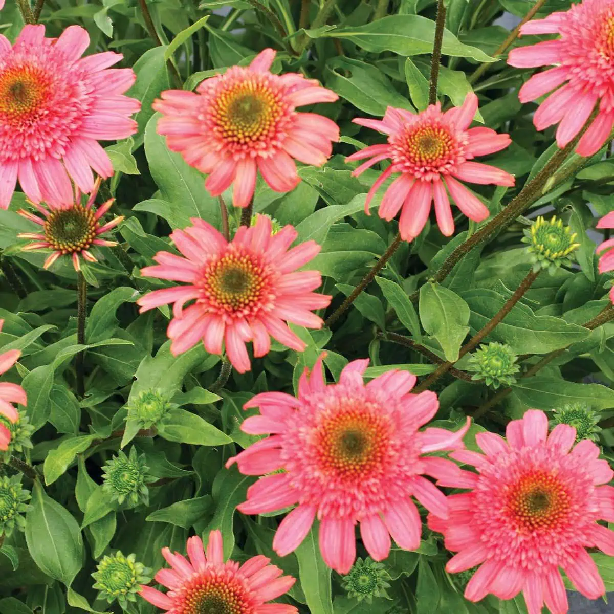 Echinacea CARA MIA ‘Seashell’ is a unique and beautiful perennial known for its pale pink, spoon-shaped petals that curve delicately around a prominent orange center. Blooming from midsummer to autumn, it adds a soft, romantic touch to garden borders, containers, and pollinator-friendly landscapes. Preferring full sun and well-drained soil, this low-maintenance coneflower thrives in a variety of garden settings, attracting bees and butterflies. Its distinctive, elegant flowers make it a perfect addition to mixed plantings or cottage gardens, creating visual interest and lasting seasonal beauty.