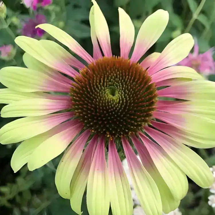 Echinacea purpurea ‘Green Twister’ boasts an upright, clump-forming habit and showcases a striking array of green and pink flowers that bloom from early summer to the end of autumn. This winter-hardy perennial adds enduring beauty to the garden; however, in the event of severe frost during winter, it is advisable to provide protection. ‘Green Twister’ stands out with its unique colour combination, making it a captivating and resilient choice for enhancing the visual appeal of your garden throughout the seasons.