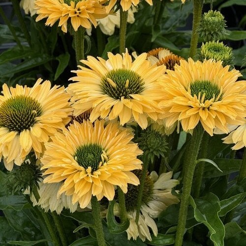 Echinacea ‘SunSeekers Limoncello’ is a vibrant perennial coneflower with cheerful lemon-yellow blooms and a contrasting orange central cone. Compact and sturdy, it grows to around 50–60 cm tall with a similar spread, making it perfect for borders, containers, or pollinator-friendly gardens. Flowering from mid to late summer, it attracts bees, butterflies, and other beneficial insects. This low-maintenance plant thrives in full sun and well-drained soil, tolerates drought once established, and adds long-lasting colour to your garden. Ideal for both cutting and naturalistic plantings, ‘SunSeekers Limoncello’ brings a sunny, uplifting touch to any outdoor space