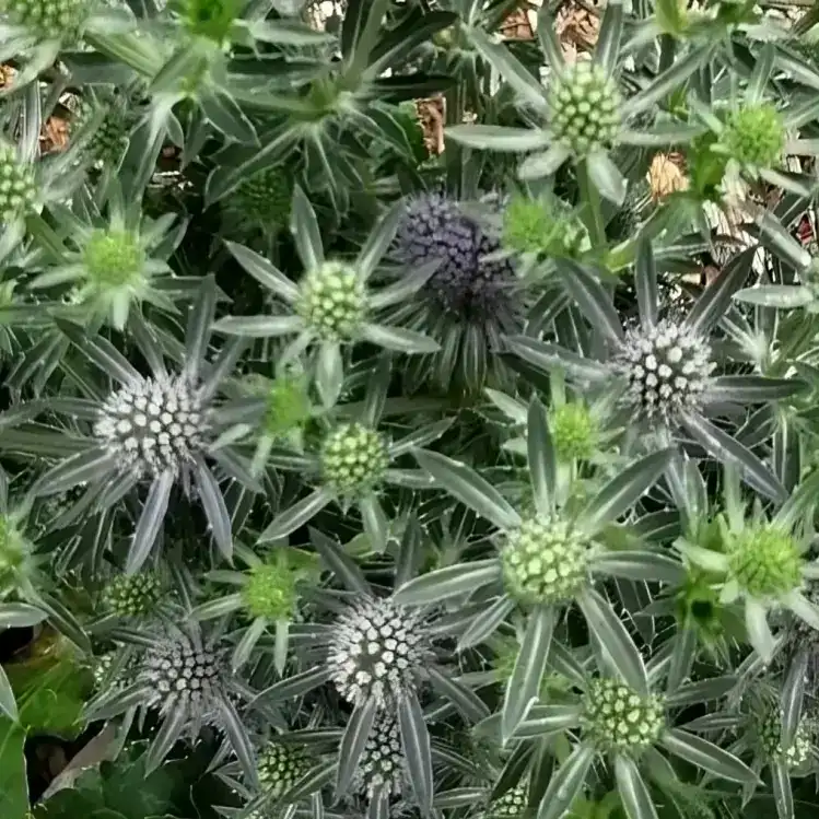 Eryngium planum Blue Hobbit has attractive green spiky leaves and a spiky thimble-shaped blue flower. Its compact habit makes it perfect for pots and borders and is great for attracting bees to your garden. Although regarded as a perennial, it’s recommended to protect in severe winters. Lift and divide large plants in spring. Makes great cut flowers