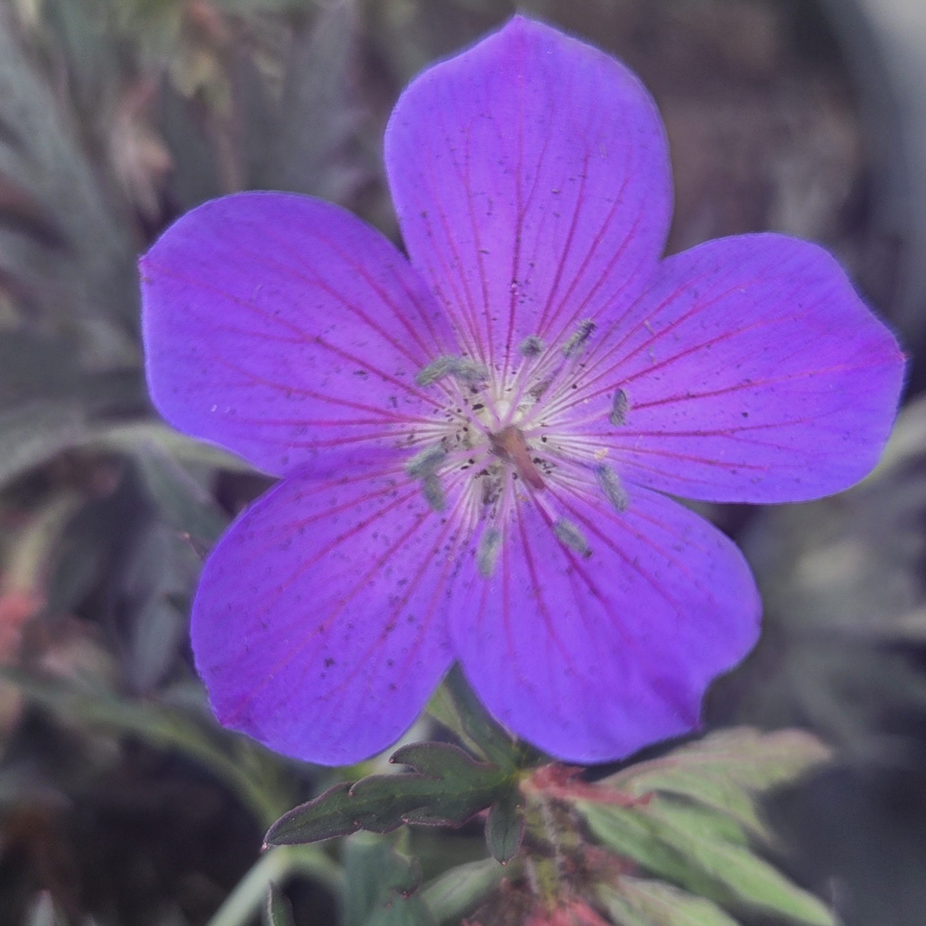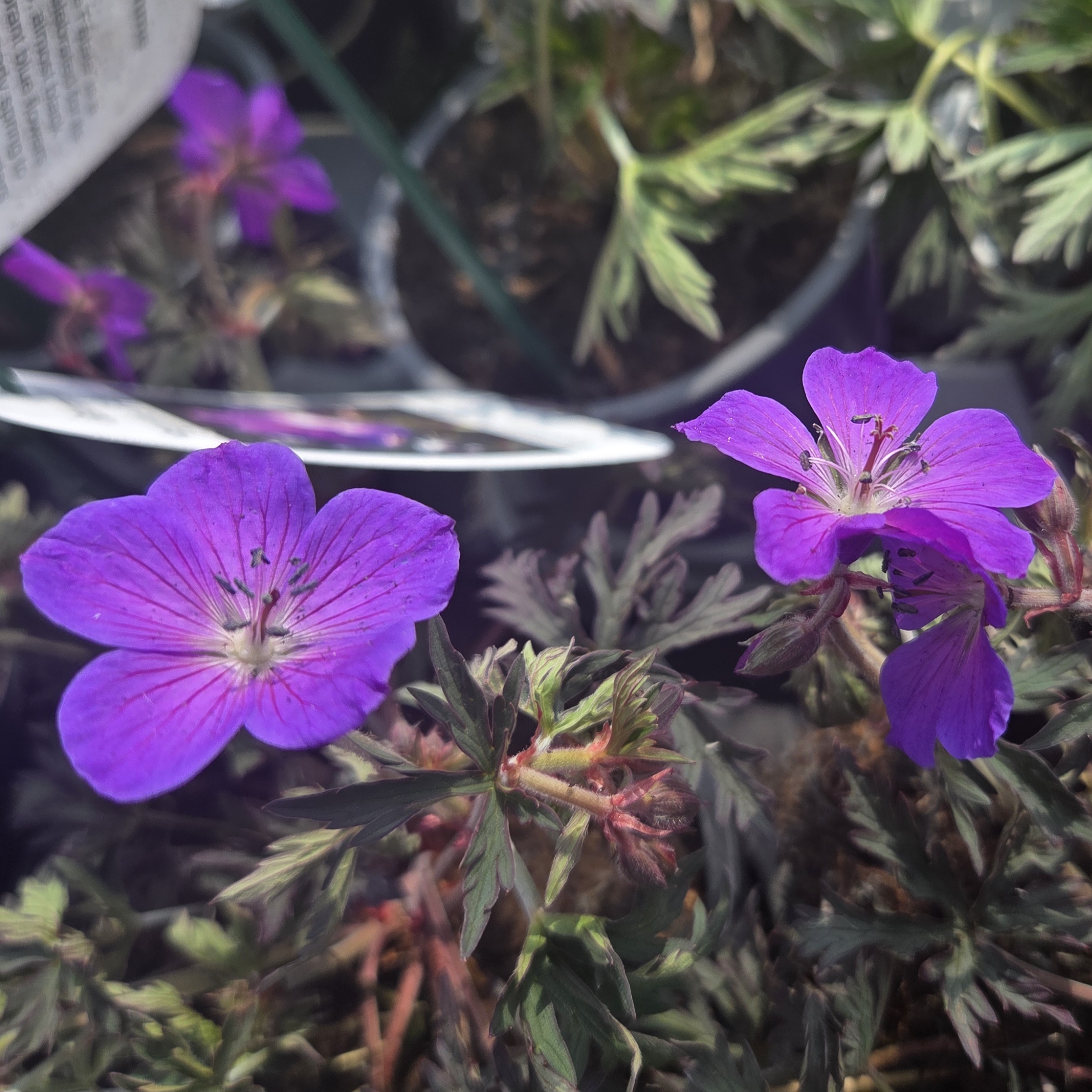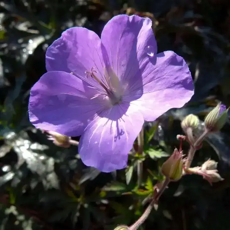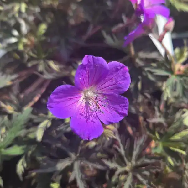 Geranium ‘Femme Fatale’ is a hardy perennial celebrated for its striking purple, almost black foliage and vibrant blue flowers that bloom from early spring to late summer. Perfect for borders and wildlife gardens, it attracts pollinators with its vivid display. Resilient and low-maintenance, it typically requires protection only during harsh winter conditions.