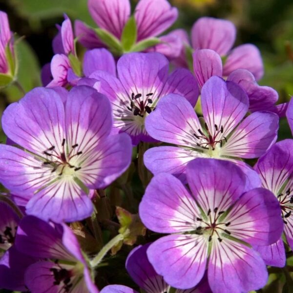 Geranium ‘Sweet Heidy’ is a vigorous, long-flowering hardy geranium valued for its soft lavender-pink flowers with darker veining and excellent ground-covering habit. Blooming from late spring through to autumn, it forms a spreading mound of fresh green foliage that weaves beautifully through borders and mixed plantings. Highly attractive to bees and other pollinators, it’s ideal for wildlife-friendly gardens, cottage borders, and underplanting shrubs or roses. Easy to grow in full sun or partial shade in well-drained soil, this reliable perennial provides months of colour with minimal maintenance.