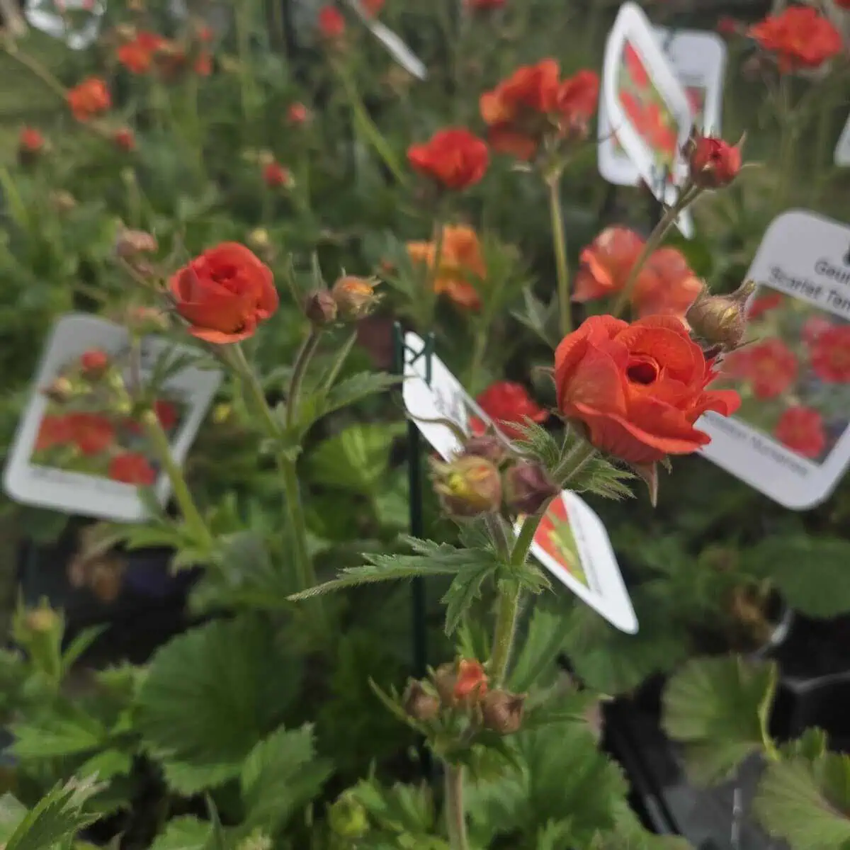 Geum ‘Scarlet Tempest’ is a wonderful plant produces stunning mass of scarlet flowers, flowering from early summer right through to the end of autumn. The plant was bred by plantswoman Elizabeth MacGregor at her nursery in Scotland. It is a cross between Geum ‘Beech House Apricot’ and Geum chiloense ‘Red Dragon’. introduced in 2016. Loved by bees.