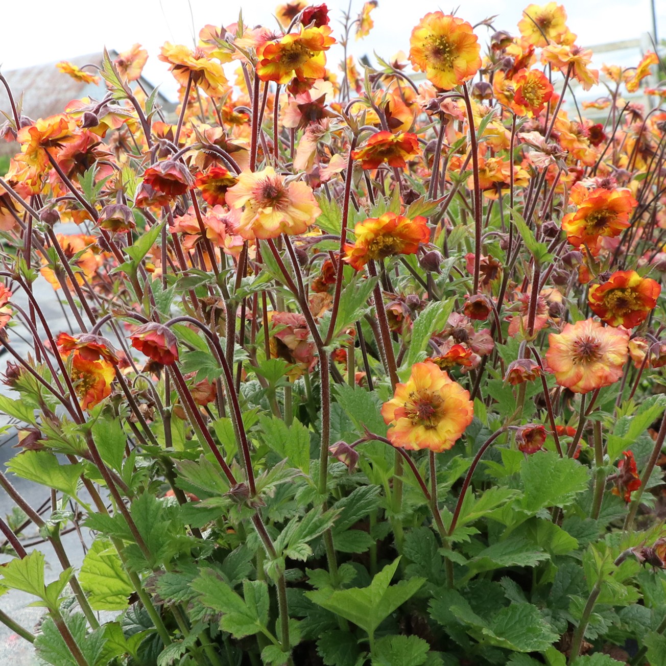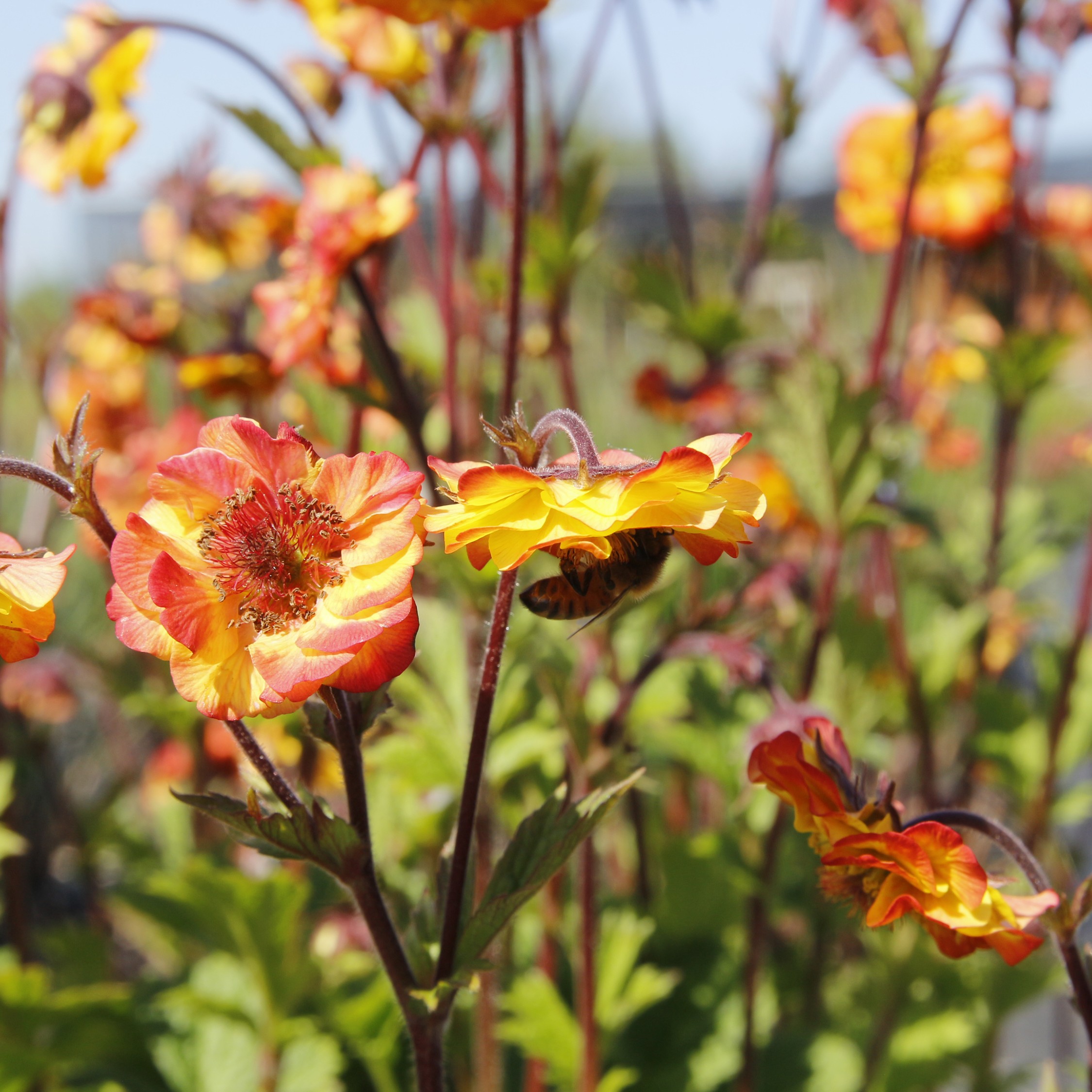 Geum TEMPO™ ‘Fiesta’ is a striking addition to the TEMPO™ series, featuring neat mounds of deep green foliage topped with bright yellow flowers edged with a vibrant orange picotee. This long-flowering perennial produces a repeat bloom into the fall, while the foliage remains tidy throughout the summer. Compact and well-behaved, it is ideal for borders, mixed perennial beds, or container planting, making it perfect for both garden beds and pots. With its combination of bold colour, extended flowering, and clean habit, ‘Fiesta’ brings lasting impact and charm to any planting scheme.