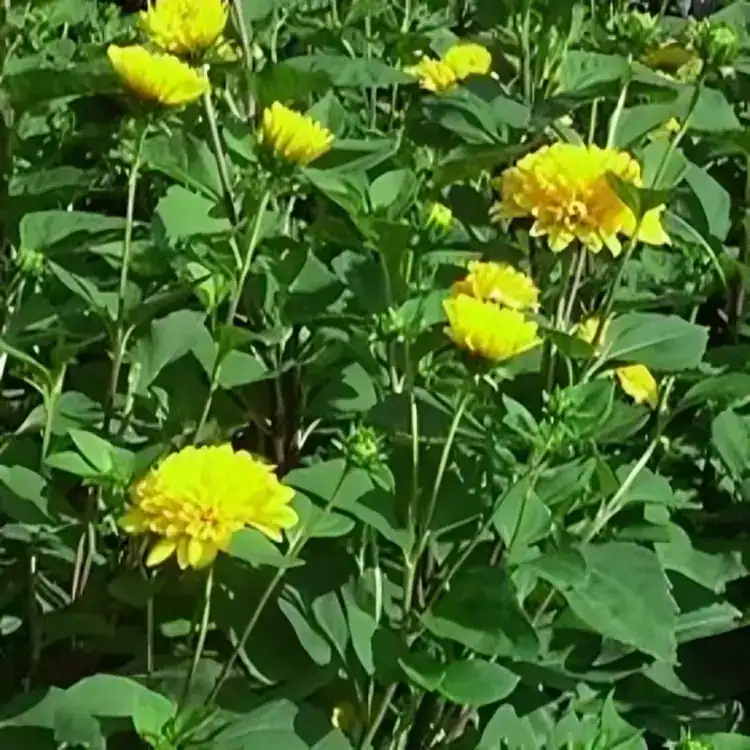 Helianthus x multiflorus ‘Sunshine Daydream’ has a bushy habit that produces clumps of yellow flowers. Flowering will start in late spring and will continue flowering until late summer. Deadhead once flowering finishes to encourage further blooming. Attracts bees and butterflies to your garden but is not known to attract deer and rabbits. Hardy but may need protection if we have to serve frost