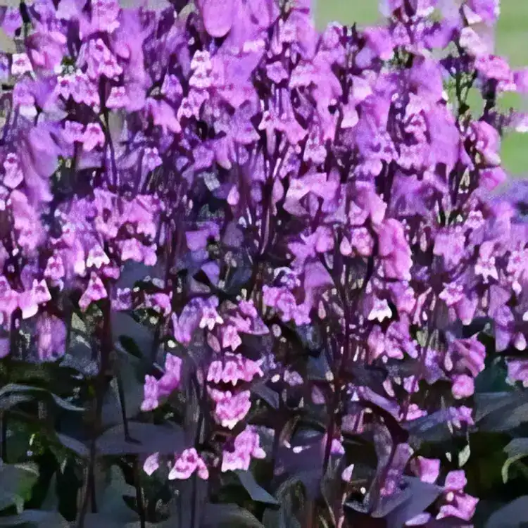Penstemon ‘Midnight Masquerade’ is a semi-evergreen perennial known for its continuous blooming of pink flowers from early summer to mid-autumn. To encourage additional blooming, deadheading is recommended once the flowering phase concludes. With its neat upright habit, it is well-suited for perennial borders or wildlife areas. While hardy, this variety may require protection during the winter months.