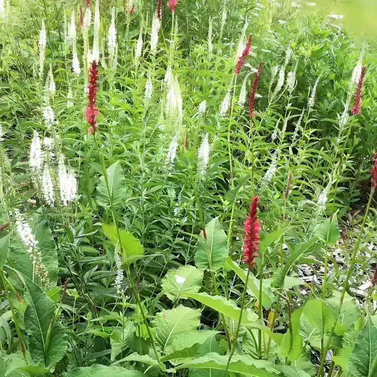 Persicaria amplexicaulis ‘Speciosa’ is characterized by its abundant and appealing dark red flowers, gracing the garden from early summer to autumn. This variety serves as a magnet for bees and butterflies, enriching your garden with vibrant pollinator activity. Notably, ‘Speciosa’ is generally not enticing to deer, and rabbits are inclined to avoid it. Despite its inherent hardiness, providing protection during severe frost is recommended to ensure the continued resilience and blooming success of this perennial. ‘Speciosa’ not only brings visual allure to your garden but also fosters a pollinator-friendly environment while withstanding various environmental challenges.