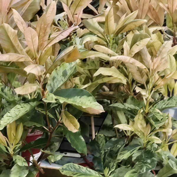 Photinia serratifolia ‘Pink Crispy’ can be susceptible to aphids, capsid bugs, whitefly, sage leafhoppers, and glasshouse red spider mites. Additionally, fungal issues like grey mould (Botrytis) can develop in cool and damp conditions, especially during overwintering.