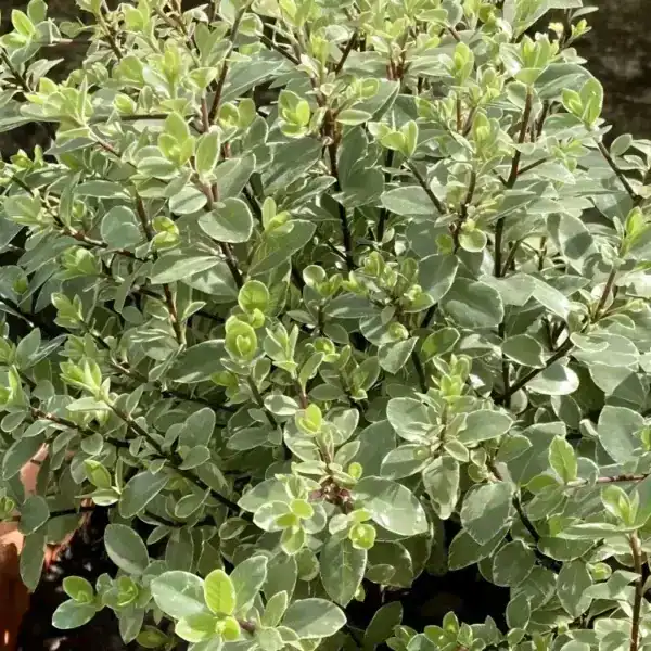 Pittosporum tenuifolium ‘Wrinkled Blue’ is a captivating dwarf evergreen shrub with stunning green, blue, and silver foliage. Flourishing in a warm garden, this shrub showcases its most vibrant coloration when situated in full sun, though it also accommodates partial shade. When initially planted, it is crucial to provide thorough watering, ensuring the soil maintains moisture without becoming overly saturated during the first two weeks. This meticulous early care is instrumental in fostering the successful establishment and overall well-being of the plant.