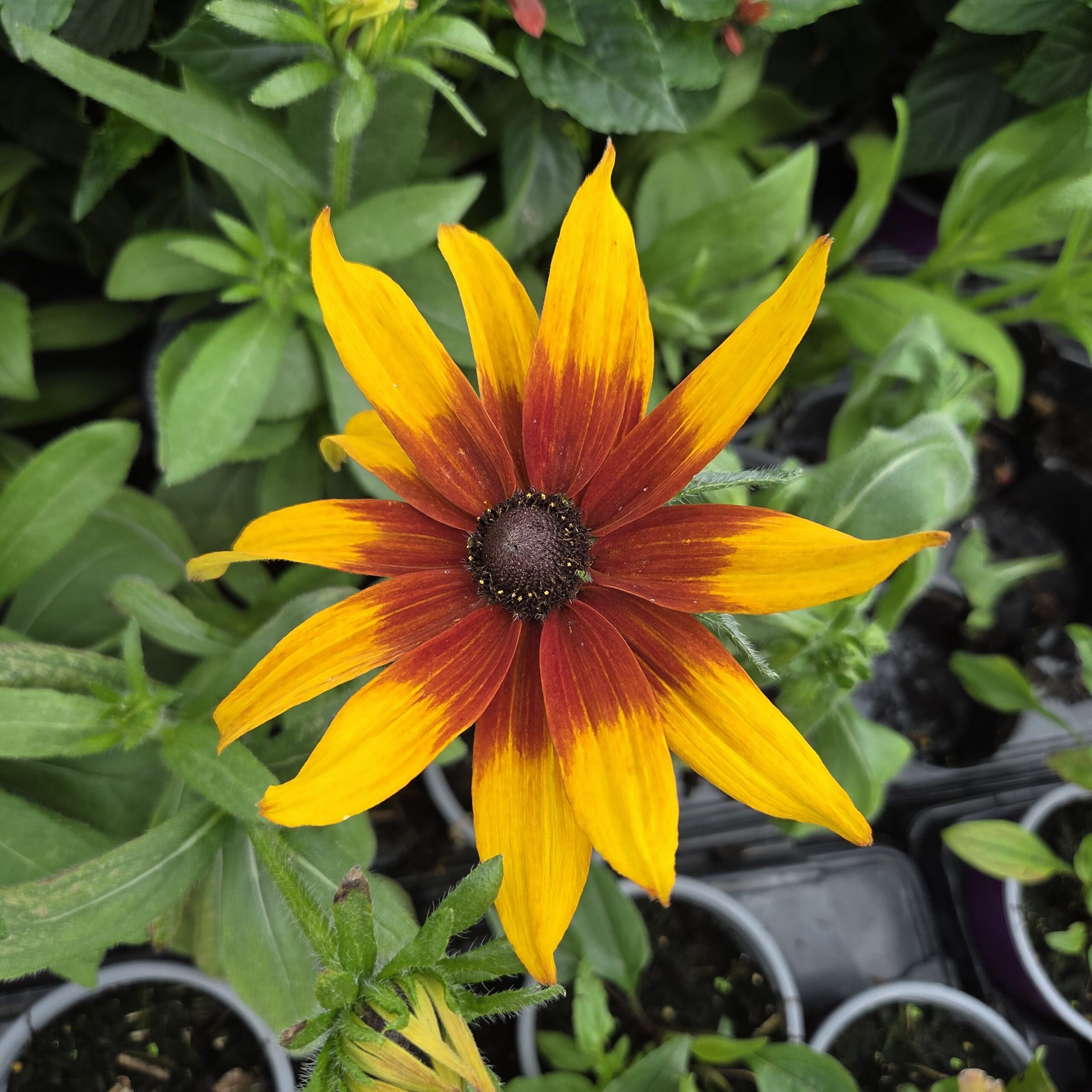 Rudbeckia ‘Ruby Sunset’ is a stunning perennial featuring vibrant ruby-red petals surrounding a dark central cone, creating a dramatic and eye-catching display in any garden. Blooming from mid to late summer, it attracts pollinators like bees and butterflies, enhancing your garden’s biodiversity. Hardy and low-maintenance, it thrives in full sun and well-drained soil, making it perfect for borders, containers, or naturalistic plantings. With its rich, warm tones, ‘Ruby Sunset’ adds a burst of color to late-summer beds and floral arrangements. A must-have for gardeners seeking bold, long-lasting summer blooms.