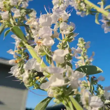 Salvia ‘Apiana’, commonly known as White Sage or Sacred Sage, features striking silvery foliage with a velvety texture, thanks to its fine, soft hairs. It also produces tall, tubular flower spikes in delicate shades of white/pale lavender. This elegant plant is a perfect choice for borders or gravel gardens, adding both texture and a touch of colour.