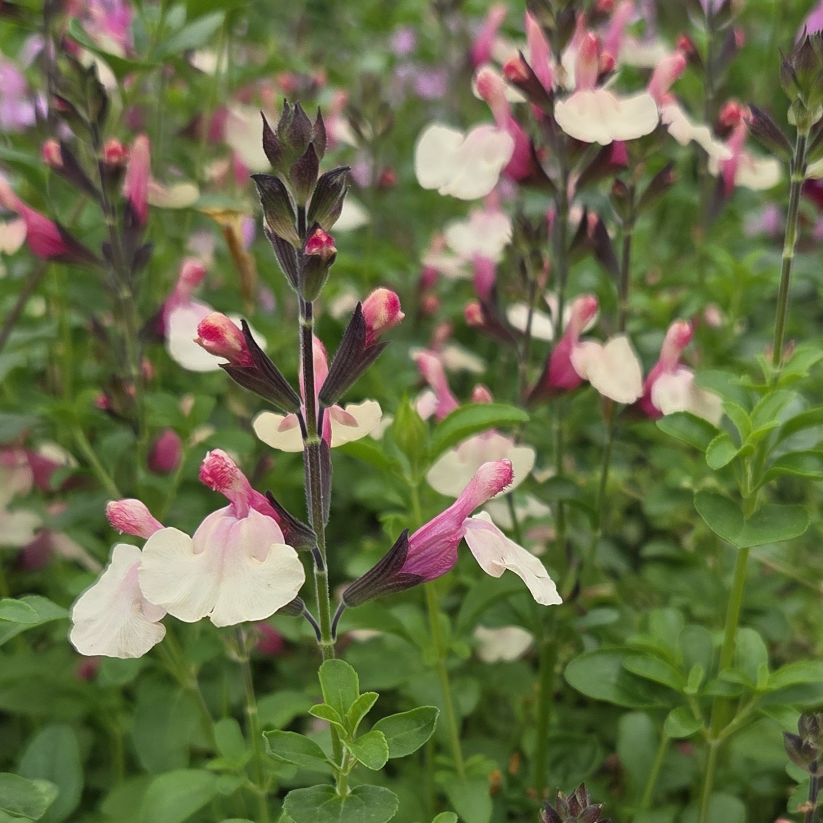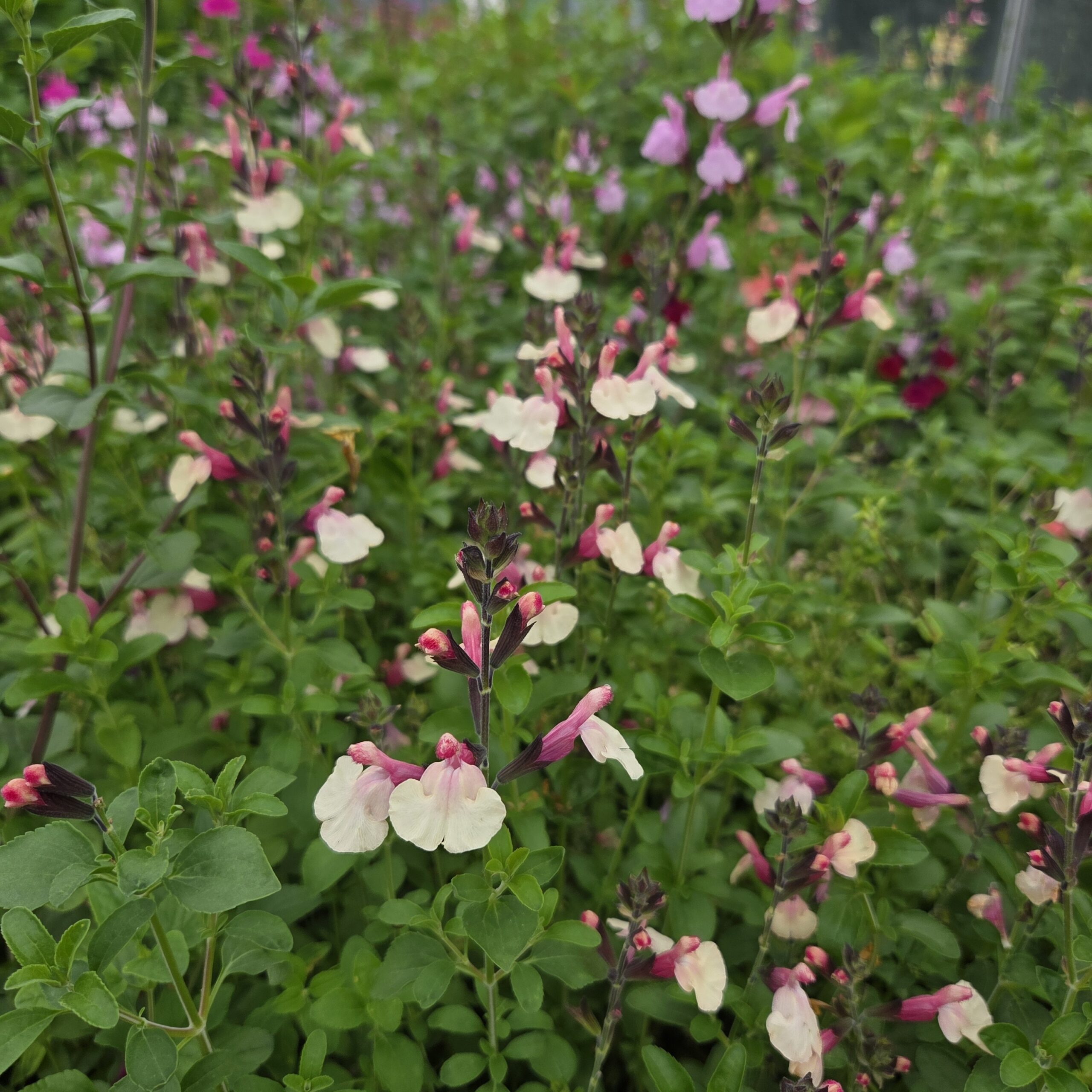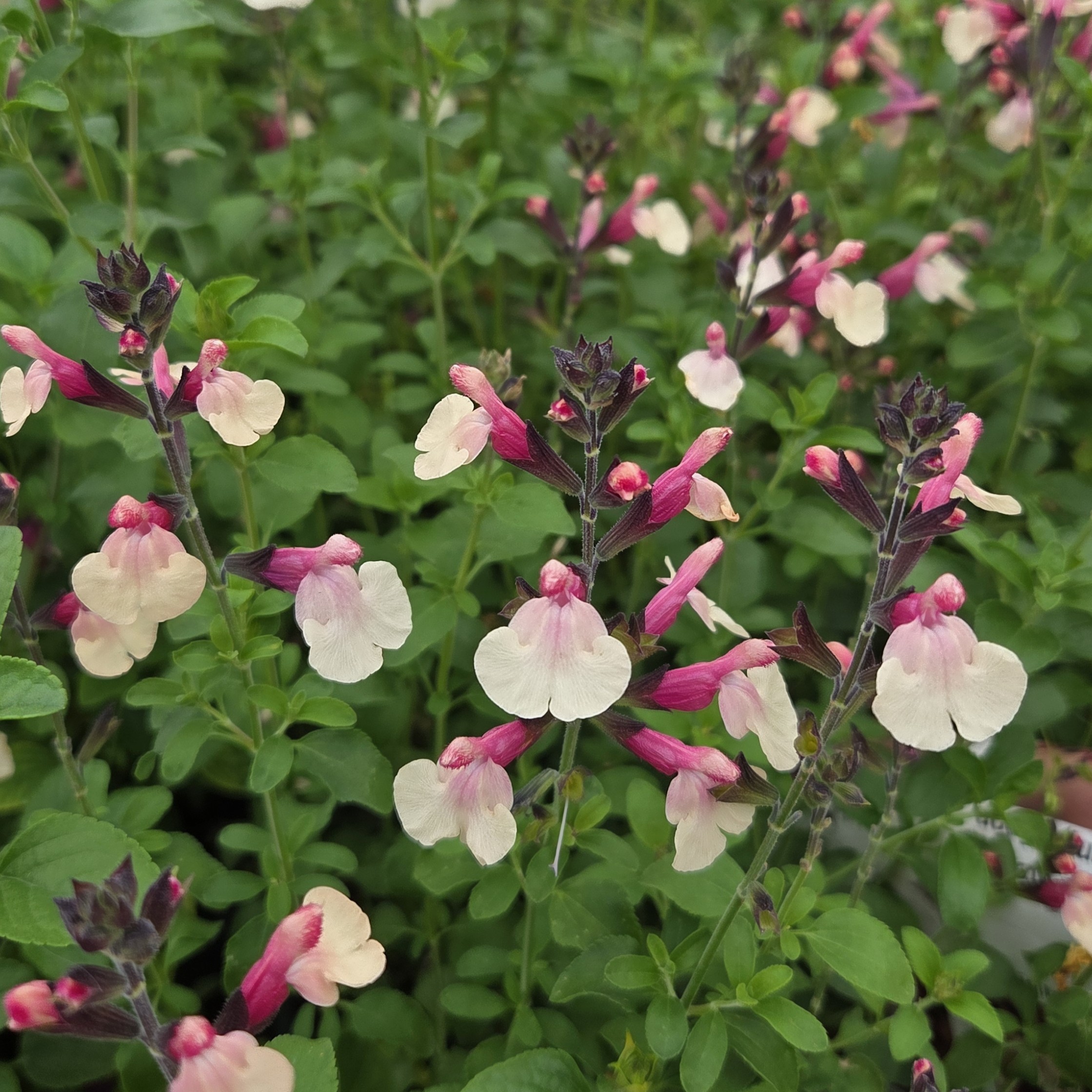 Salvia greggii ‘Autumn Moon’ is a charming perennial salvia featuring a compact, bushy habit and striking bi-coloured flowers in soft pink and cream. Blooming profusely, its nectar-rich blossoms attract bees, butterflies, and other pollinators, making it an excellent choice for wildlife-friendly gardens.