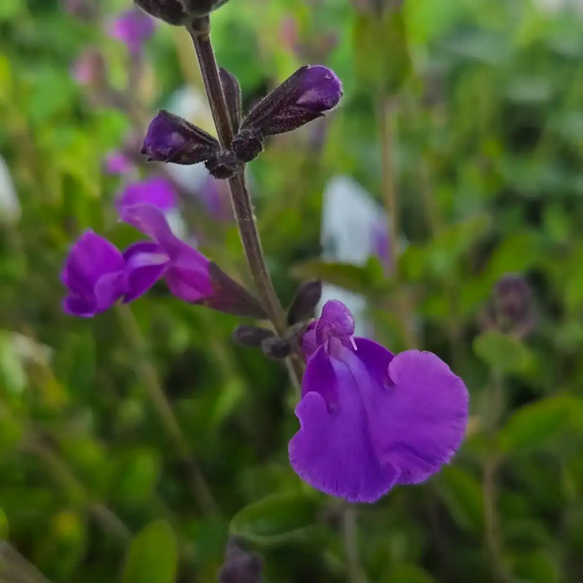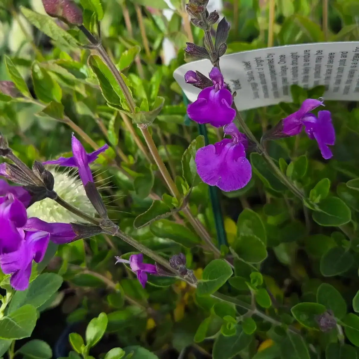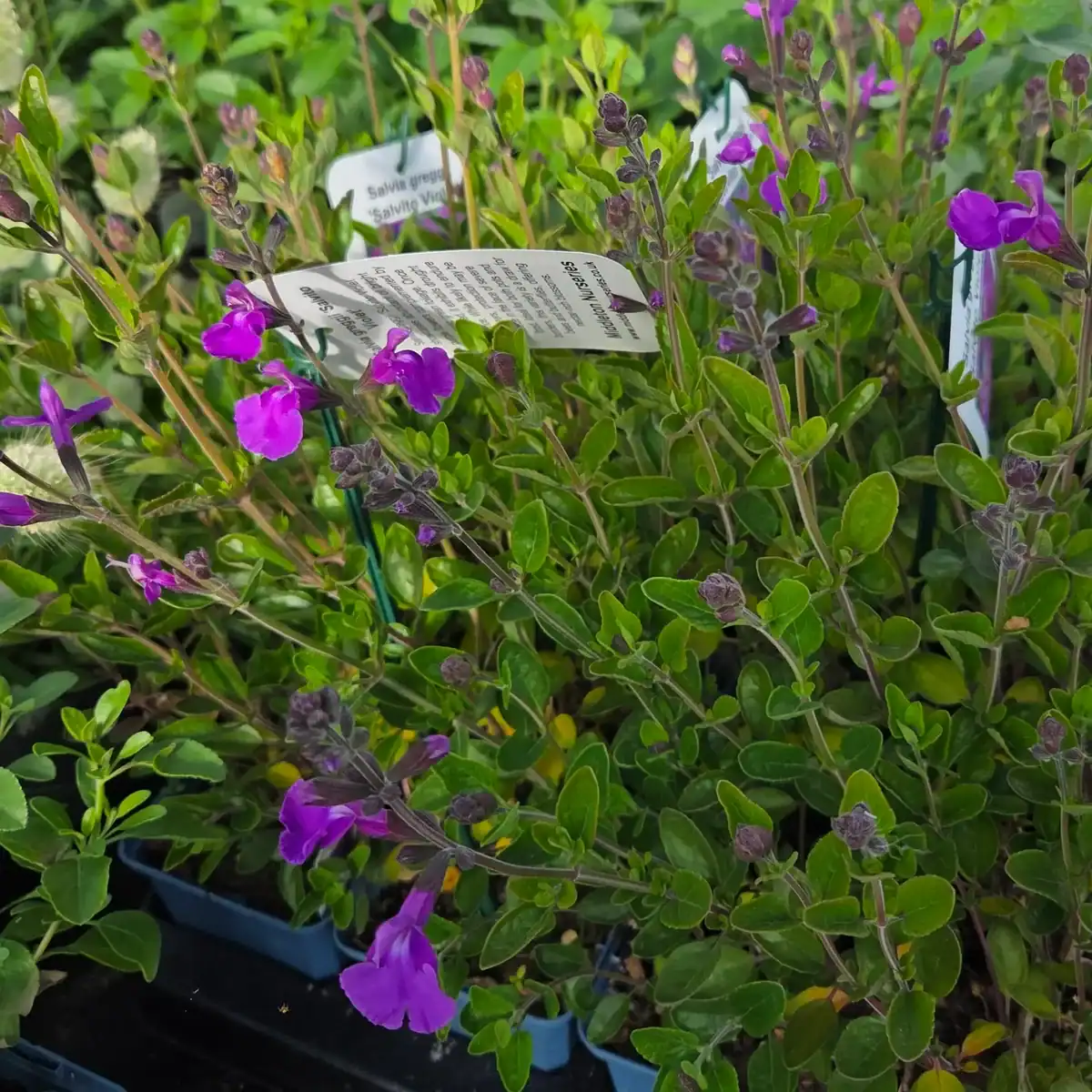 Salvia greggii ‘Salvito Violet’ is characterized by its petite aromatic green leaves and vibrant purple flowers that persist from summer through autumn. Once established, it demonstrates drought tolerance. While generally likely to withstand UK winters, it’s advisable to consider protection in the presence of severe frost. Well-suited for both containers and garden borders, this variety adds a burst of colour and fragrance to your outdoor space.