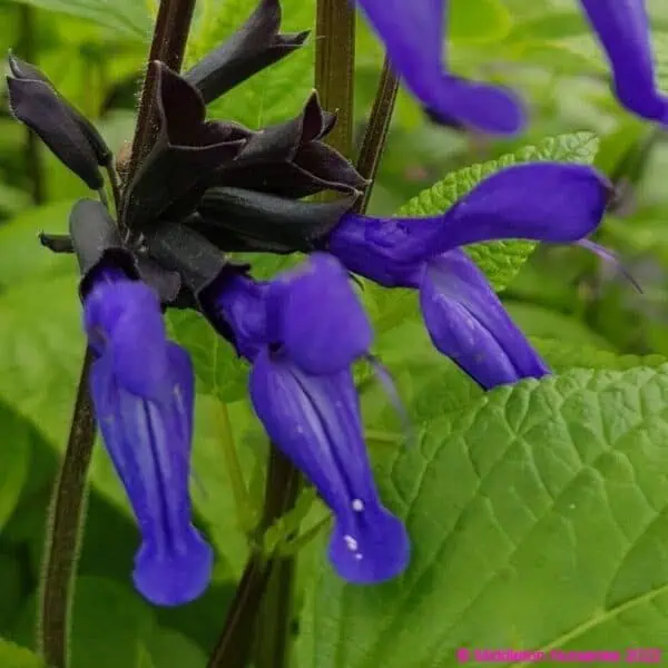 Salvia guaranitica ‘Black and Blue’ is one of the most striking salvias you can grow, famous for its intense cobalt‑blue flowers set against dramatic near‑black calyxes. These richly coloured, tubular blooms appear from mid‑summer through to the first frosts, creating a bold vertical presence that enriches borders, mixed beds, and large containers.