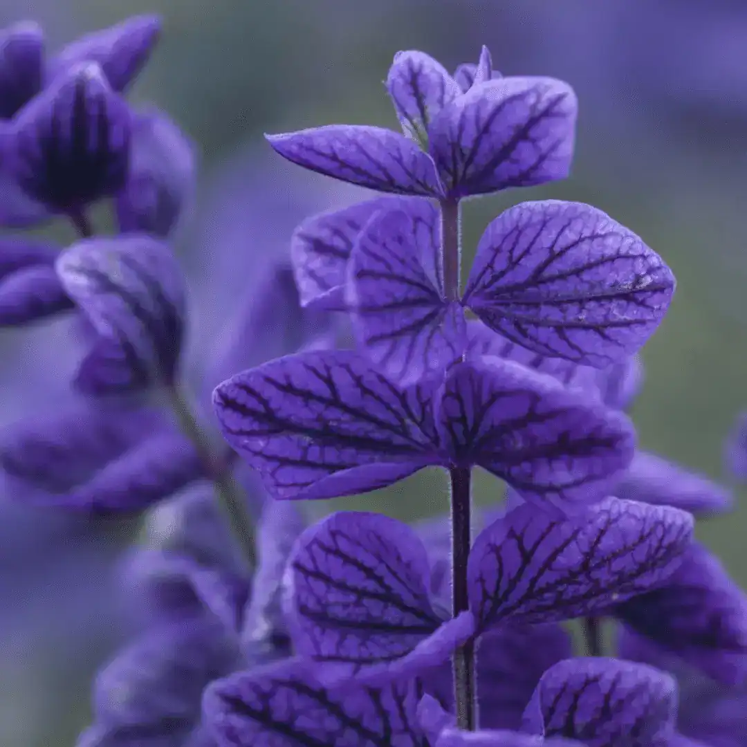 Salvia horminum ‘Oxford Blue’ also known as Salvia viridis, speaks or it’s self with it’s stunning deep blue almost purple bracts, featuring veins in a deeper shade. These elegant blooms rise above the foliage, creating a stunning delicate contrast and adding a luminous touch to any garden. Its soft, delicacy makes it an ideal addition to garden borders or containers, where it gracefully complements both bold, vibrant foliage and more subdued, delicate plants. Whether planted in groups for a dramatic display or as a striking solitary specimen, Salvia ‘Oxford Blue’ adds an enchanting touch, transforming your outdoor space into a place of magic and wonder.