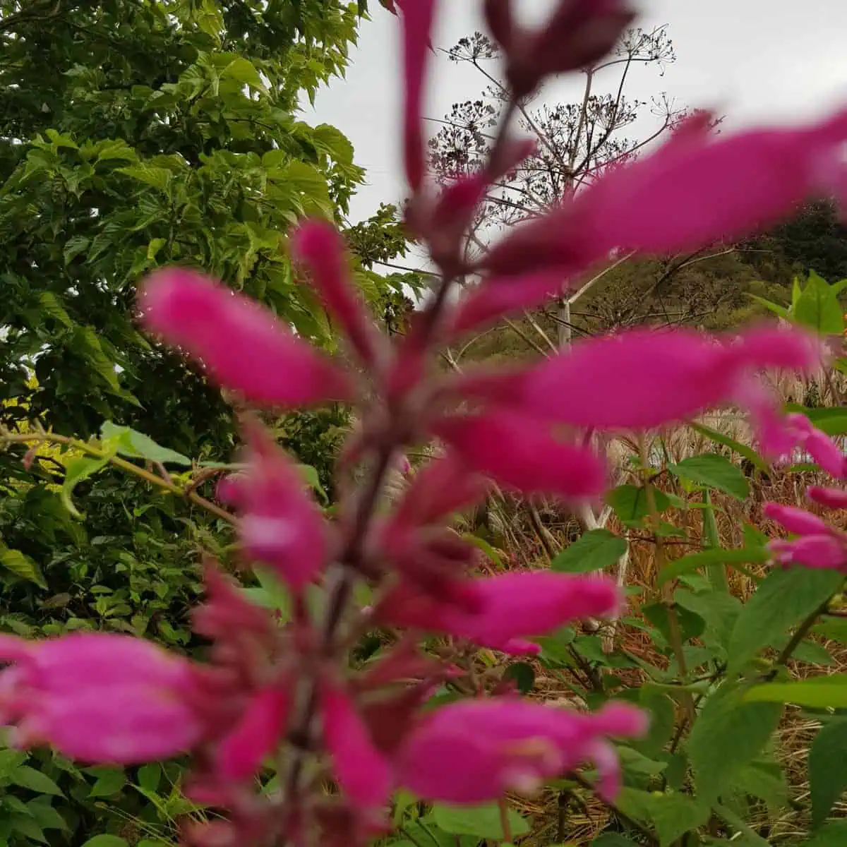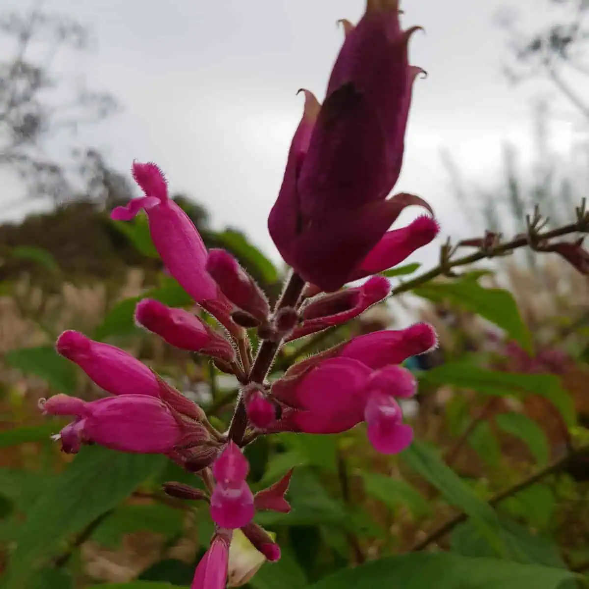 Salvia involucrata ‘Bethellii’ should be left through the winter, as the dead wood protects them from frost. They can be pruned in early spring, and more vigorous varieties may be trimmed again around June.