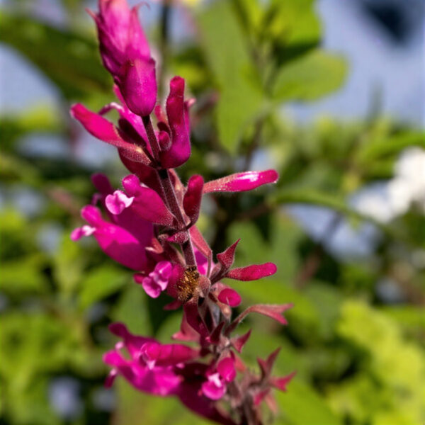 Salvia involucrata ‘Hadspen’ is a striking, late-flowering salvia valued for its rich cerise-pink blooms held within deep burgundy bracts from late summer into autumn. Tall, upright stems rise above large, softly textured green leaves, bringing height, colour and drama to borders at a time when many plants are fading. Particularly attractive to bees and other pollinators, it adds movement and vibrancy to wildlife-friendly planting schemes. Best grown in full sun and well-drained soil, this impressive perennial works beautifully in mixed borders and exotic-style gardens. In colder areas it benefits from winter protection.