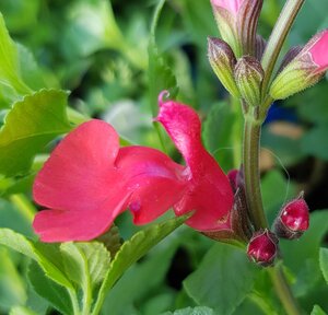 Salvia microphylla ‘Suzanne’ should be trimmed around April or May, a technique often called the “Chelsea Chop,” once new shoots start to appear. Cut back to the fresh growth, and continue deadheading throughout the season. Vigorous varieties can be pruned again in July to encourage bushier, greener plants rather than tall, woody stems. Salvias should not be cut back in autumn, as leaving the foliage intact helps protect the plant from frost.