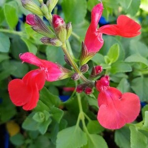 Salvia microphylla ‘Suzanne’ is a striking, long-flowering perennial that captivates from May onwards with its rich, deep red blooms. Flowering continuously through the summer months, it brings vibrant colour and lasting impact to borders, patio containers and courtyard gardens. Its compact, bushy habit makes it equally suited to garden beds and pots, where it provides reliable performance and bold seasonal interest.