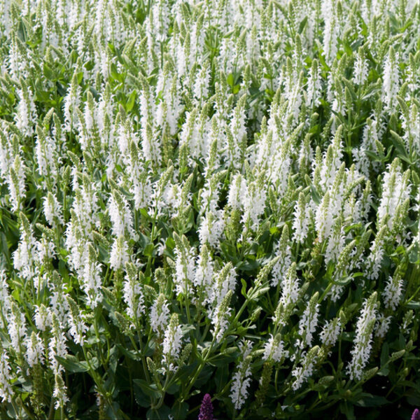 Salvia Lyrical White is a compact, hardy perennial producing elegant spikes of pure white flowers above a neat mound of green foliage. Flowering from early summer into autumn, it adds vertical interest and long-lasting colour to borders, mixed beds, and containers. Its tidy, well-branched habit ensures a polished appearance, while the blooms attract bees and other pollinators. Thriving in full sun with well-drained soil, this versatile salvia is low-maintenance and perfect for cottage gardens, pollinator-friendly schemes, or contemporary plantings.