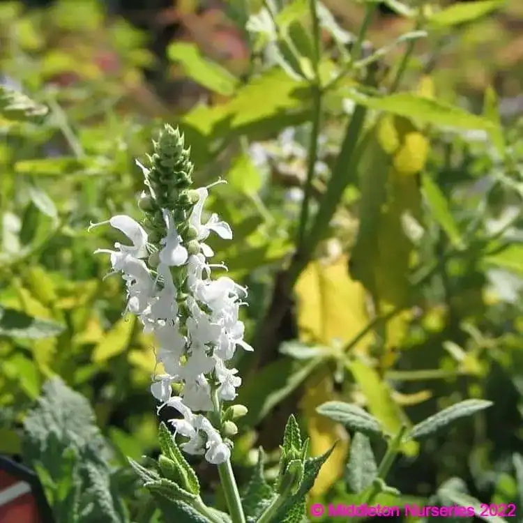 Salvia nemorosa ‘Schneehugel Snowhill’ showcases an abundance of beautiful pure white flowers, blooming from early summer to late autumn. Extremely hardy, it is unlikely to require winter protection. Well-suited for both pots and borders, this variety attracts bees and butterflies with its nectar-rich blooms. To promote a second round of flowering, regular deadheading is recommended.