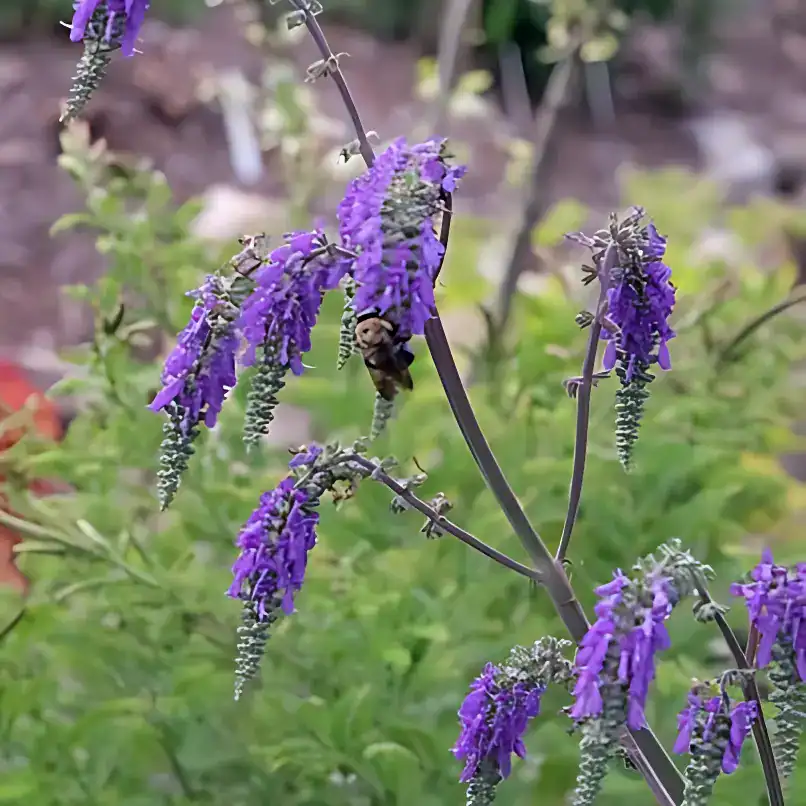 Salvia ‘Nutans’, commonly known as nodding sage, gets it’s name from the Latin word ‘nutans’, meaning ‘to nod’. This distinctive variety features clusters of violet flowers that gracefully droop from the tops of tall flower stems, creating a unique and elegant appearance. A member of the Lamiaceae family, Salvia ‘Nutans’ is native to Central and Eastern Europe, adding a touch of European charm to any garden.