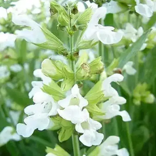 Beautiful variety of Salvia offering elegant spikes of white flowers that bloom from spring to summer. It’s highly aromatic oval grey toned, textured foliage adds a unique touch to this variety. These blooms rise above it’s bushy evergreen foliage, creating a delicate contrast and infusing the garden with a soft, luminous touch. Its stunning white hue will undoubtedly stand out, adding both beauty and wonder to any outdoor space.