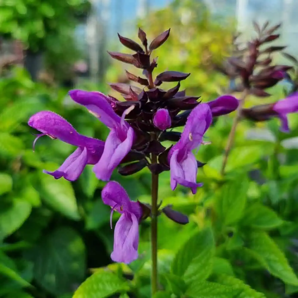 Salvia Rockin ‘Red Flamingo’ is a striking variety with vibrant pink-red flowers that create a stunning contrast against its lush green foliage. Perfect for pots or borders, this salvia is an excellent pollinator attractor, drawing bees to your garden. While it’s not hardy, taking cuttings and bringing it indoors during the winter months ensures it thrives year-round. Part of the popular Salvia Rockin Series, this plant adds color and charm to any garden setting.
