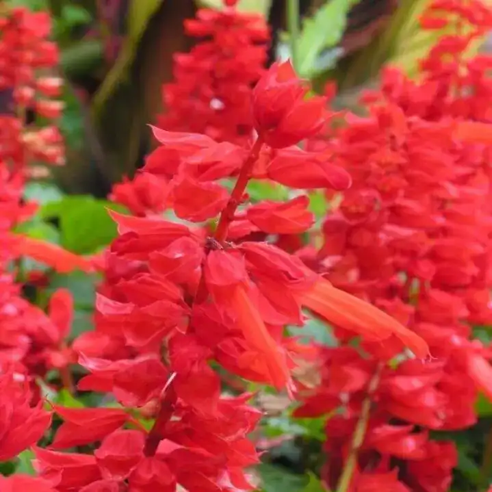 Salvia splendens ‘Cover Girl’ is a compact, dwarf annual variety that stands out for its striking scarlet-red beauty. Excellent branching and bushy habit. It features aromatic, oval-shaped green leaves that provide a rich, textured backdrop to its vibrant, tubular scarlet-red flowers, which bloom profusely throughout the growing season.This variety flourishes in full sun, making it an ideal choice for sunny borders, patios, and a variety of garden settings.