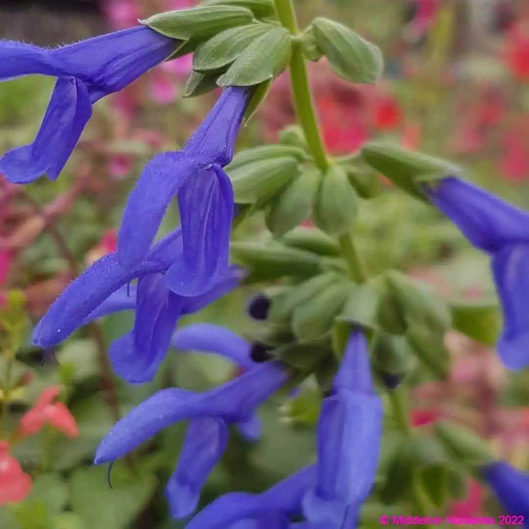 Salvia guaranitica ‘Super Trouper’ is a tall, sub-shrubby, hardy perennial with vibrant purple/blue flowers and scented foliage. Well-suited for both pots and borders, it proves to be an excellent attraction for bees in your garden. However, it will require protection in the presence of severe frost.