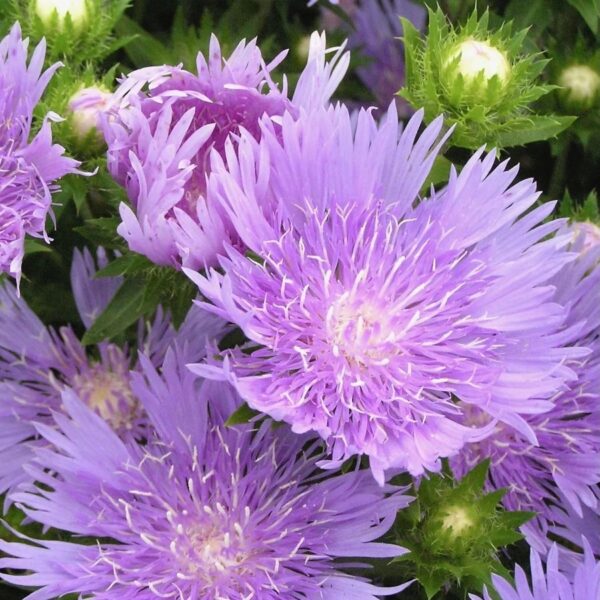 Stokesia laevis ‘Klaus Jelitto’ is a wonderful choice for borders and wildlife gardens, enticing pollinating insects with its richly coloured flowers. This variety showcases plentiful, shaggy blue-purple blooms that enhance the garden from early summer to early autumn. Hardy in nature, ‘Klaus Jelitto’ typically needs protection only during severe winter conditions to safeguard its ongoing resilience and blooming potential. With its vibrant and pollinator-friendly attributes, this Stokesia variety contributes both beauty and ecological value to your garden, embodying a harmonious blend of aesthetics and natural appeal.