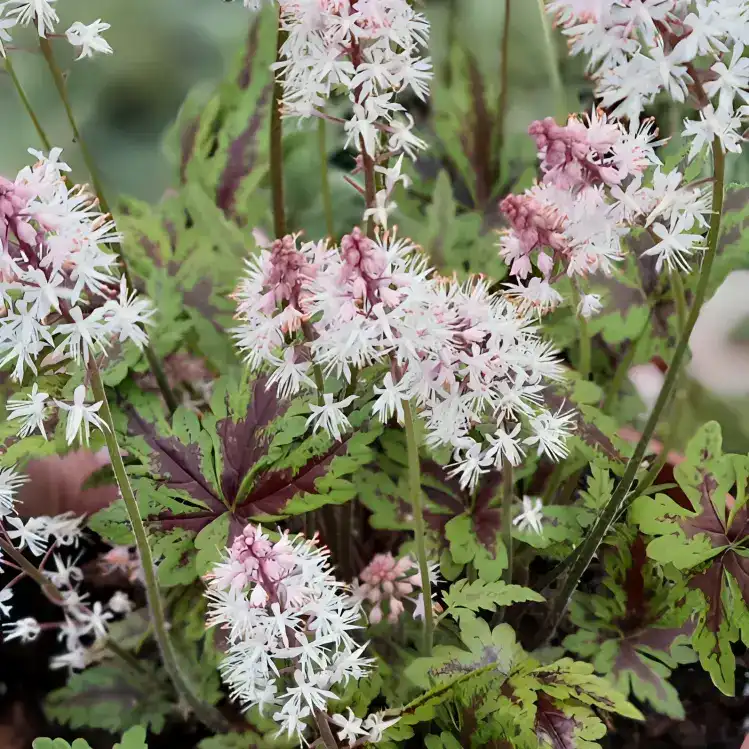 Tiarella ‘Raspberry Sundae’ produce masses of attractive pink and white flowers which blooms from early summer to autumn. They are a superb hardy perennial that is easy to grow. Their bushy habit is perfect to for garden border and will stand out in your garden. Perfect for pots and sunny borders