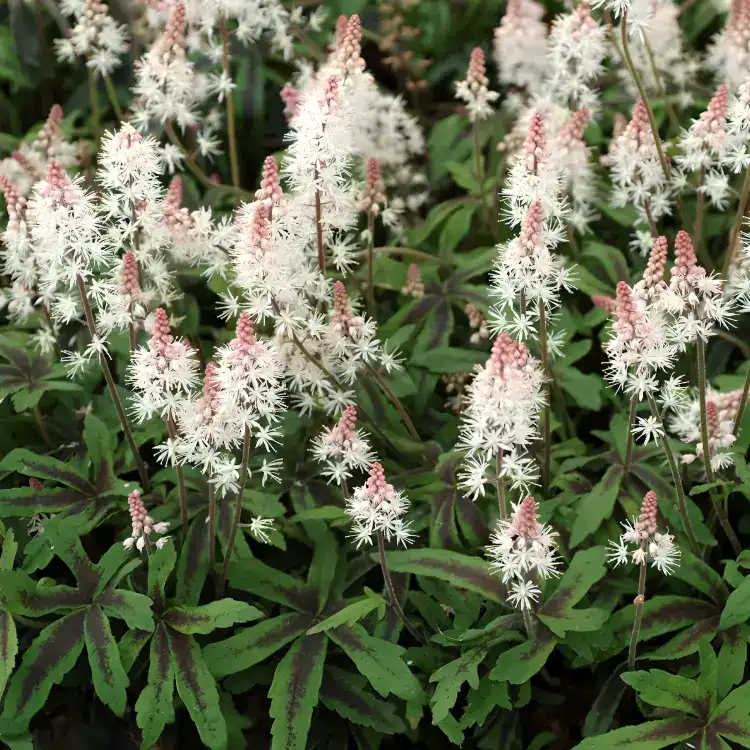 Tiarella ‘Spring Symphony’ produce masses of attractive pink and white flowers which blooms from early summer to autumn. They are a superb hardy perennial that is easy to grow. Their bushy habit is perfect to for garden border and will stand out in your garden. Perfect for pots and sunny borders