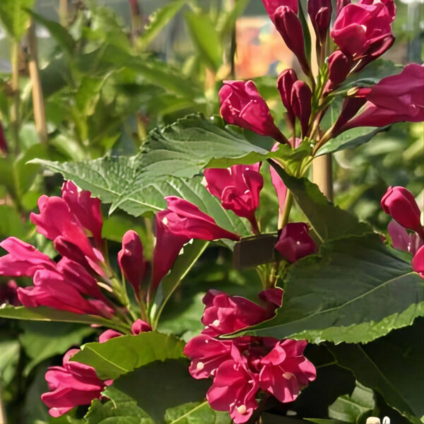 Weigela ‘Big Love’ is a stunning deciduous shrub prized for its vibrant, trumpet-shaped flowers and lush foliage. Blooming profusely from late spring into summer, its rich red-pink flowers attract hummingbirds and pollinators, creating a lively garden display. Compact yet vigorous, it grows well in full sun to partial shade and prefers well-drained soil. Its dark green leaves provide a beautiful contrast to the vivid blooms, and light pruning after flowering encourages healthy growth and repeat flowering. Perfect for borders, mixed beds, or as a striking standalone specimen, Weigela ‘Big Love’ adds long-lasting color and charm to any garden setting.